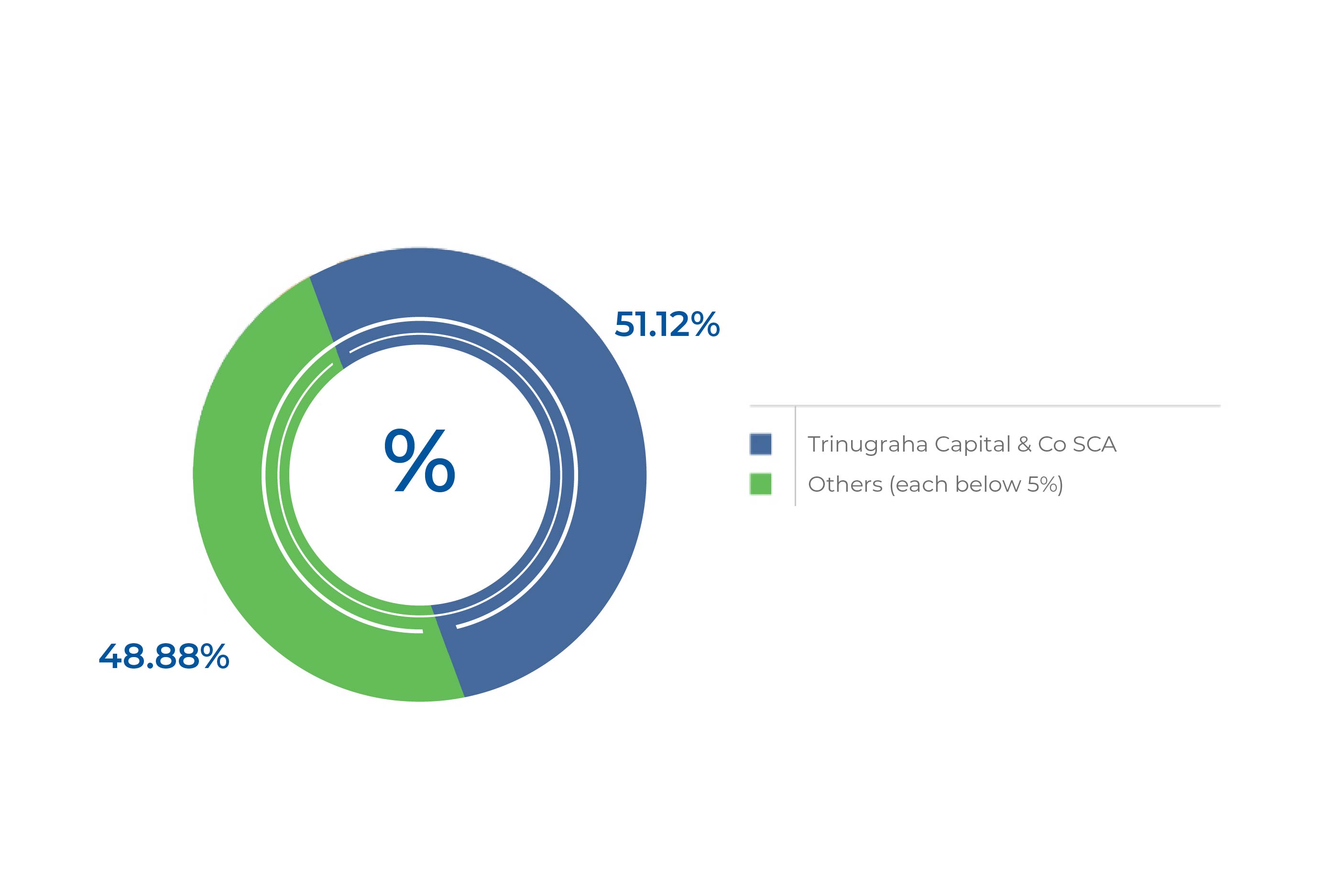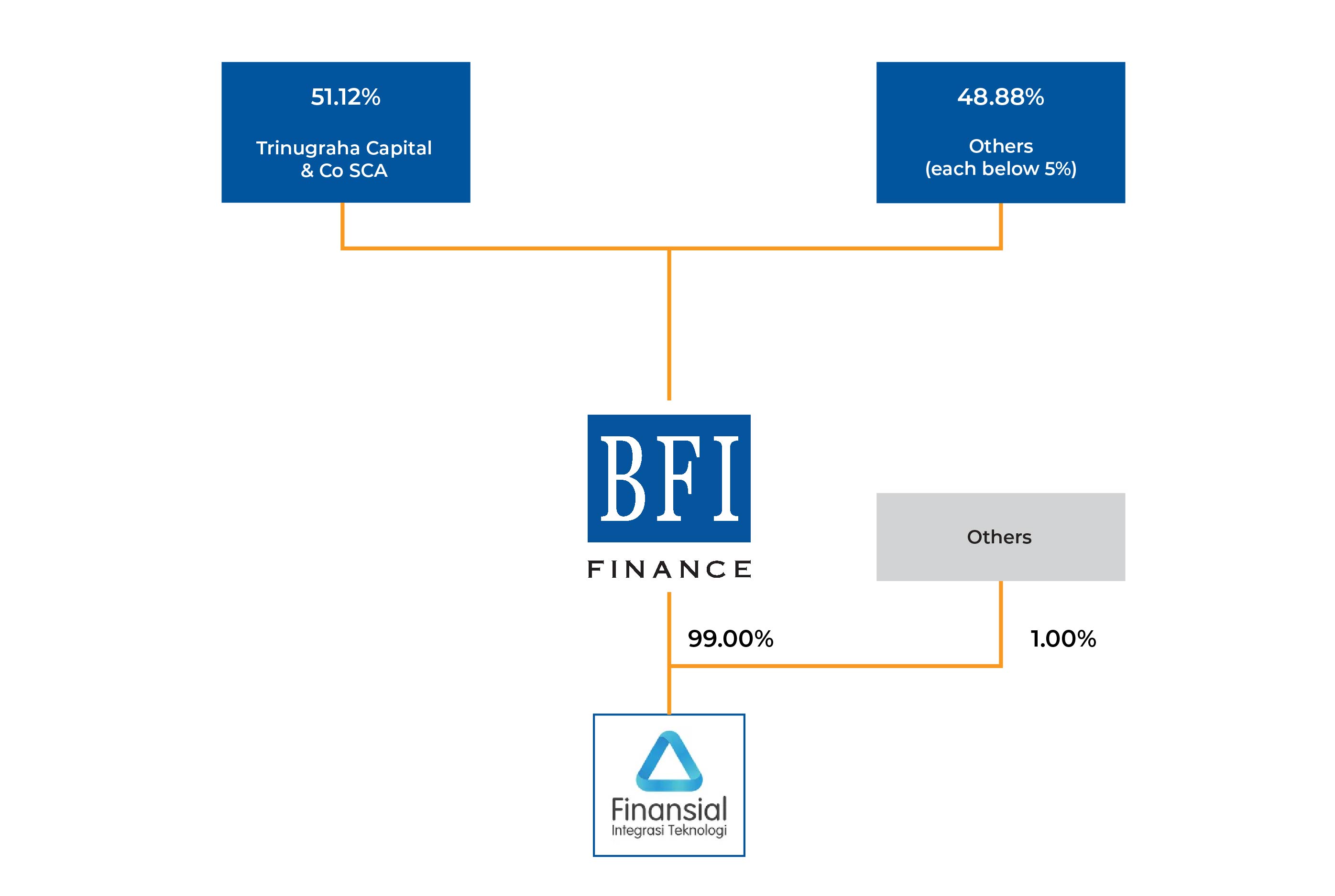 Regarding BFI Finance’s share ownership, there is one institutions that each holds more than 5% of shares, namely Trinugraha Capital & Co SCA (51.12%).